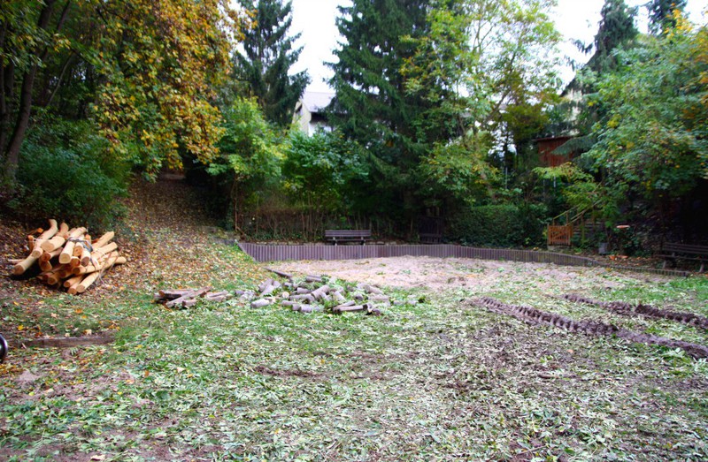 In dieser Woche haben die Bauarbeiten für die Erneuerung des Spielplatzes am Ende der Peter-von-Koblenz-Straße begonnen. Die alten Spielgeräte sind weg und die Stämme für die neuen Anlagen sind bereits da. Zudem wurde der ein oder andere Baum entfernt.