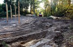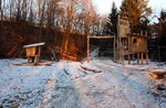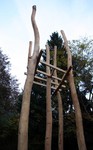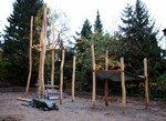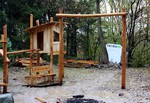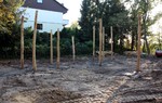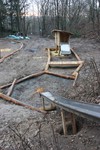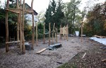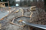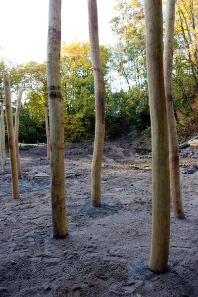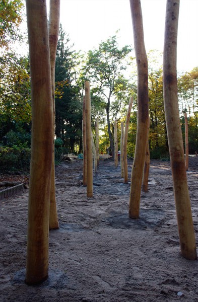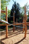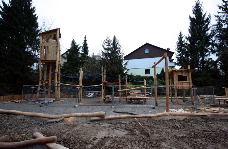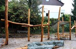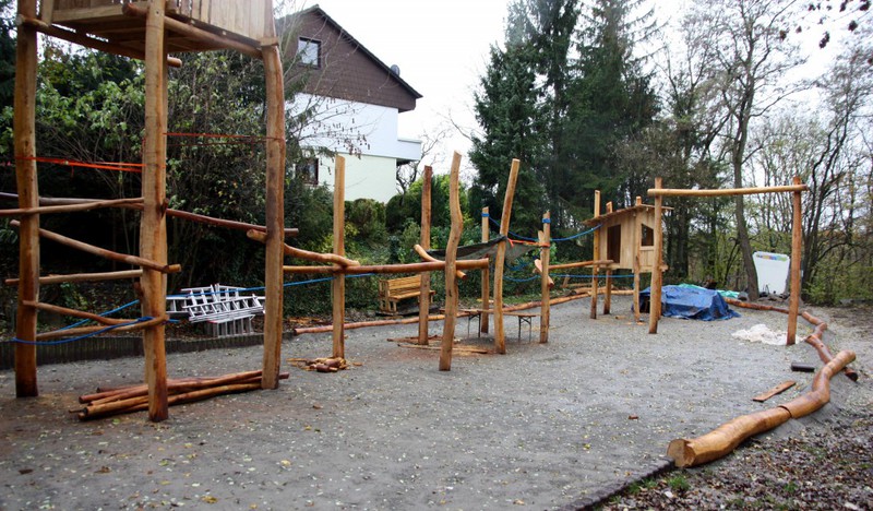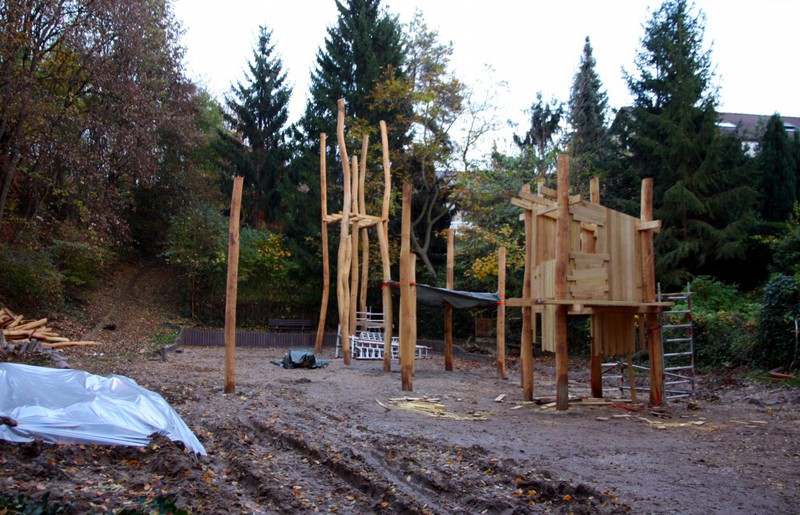 Die ersten Stämme für die neuen Spielgeräte sind gesetzt. Es geht wie beim Spielplatz am Heimbergweg wieder hoch hinaus.