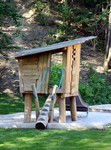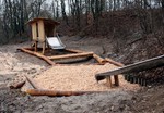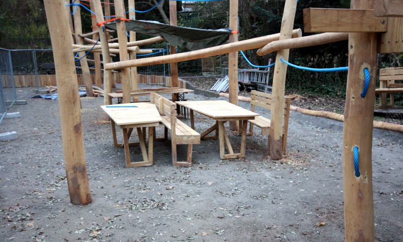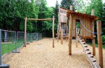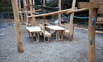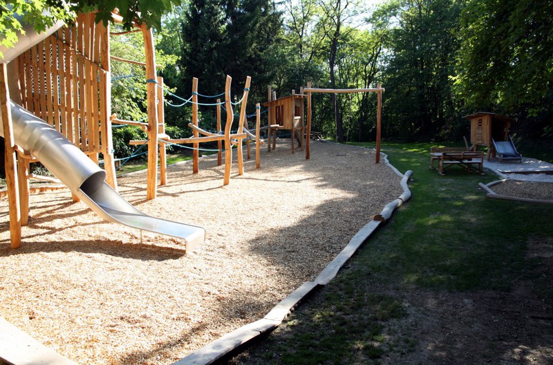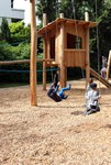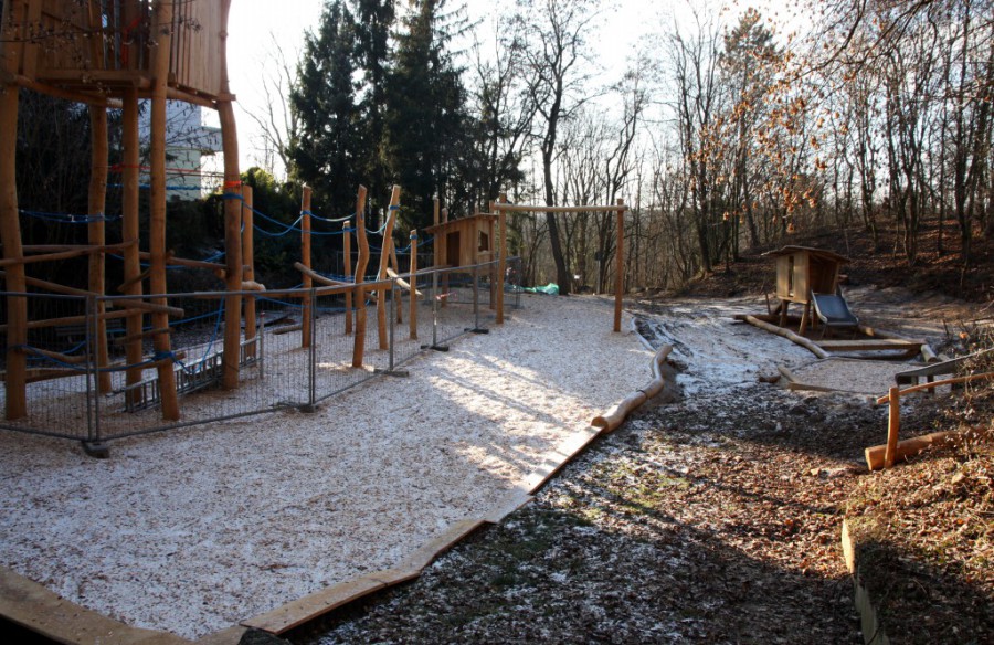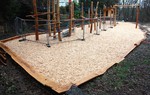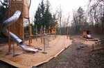 Die Spielbereiche wurden mit Holzschnitt aufgefüllt. Es kann nicht mehr lange dauern, bis der Spielplatz fertig ist.