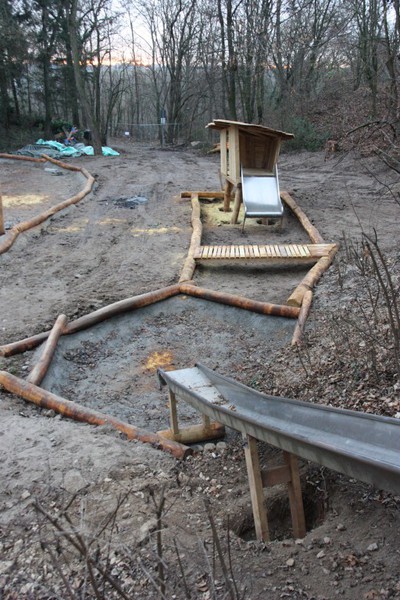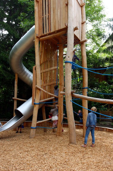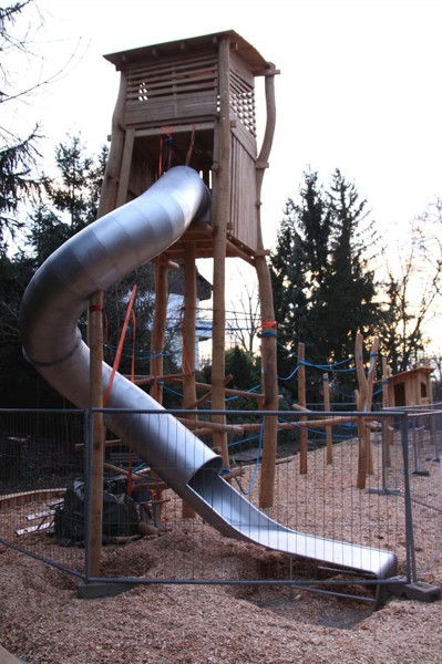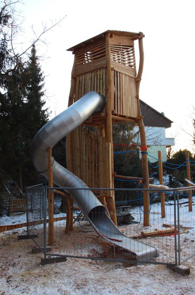 Der große Turm hat seine große Rutsche bekommen. Sehr schön und bereits in der Planung (siehe unten auf dieser Seite) vorgesehen.