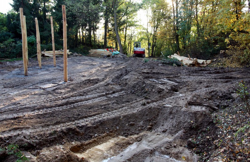 Das zweite Baufeld nimmt Gestalt an. Das Häuschen kommt nun doch auf Stelzen.