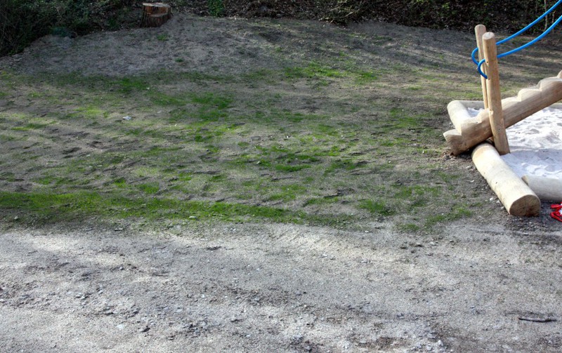 Nach längerer Zeit mal wieder ein Fortschritt beim Spielplatz in der Peter-von-Koblenz-Straße. Der Sand ist da und es wurde Rasen gesät.