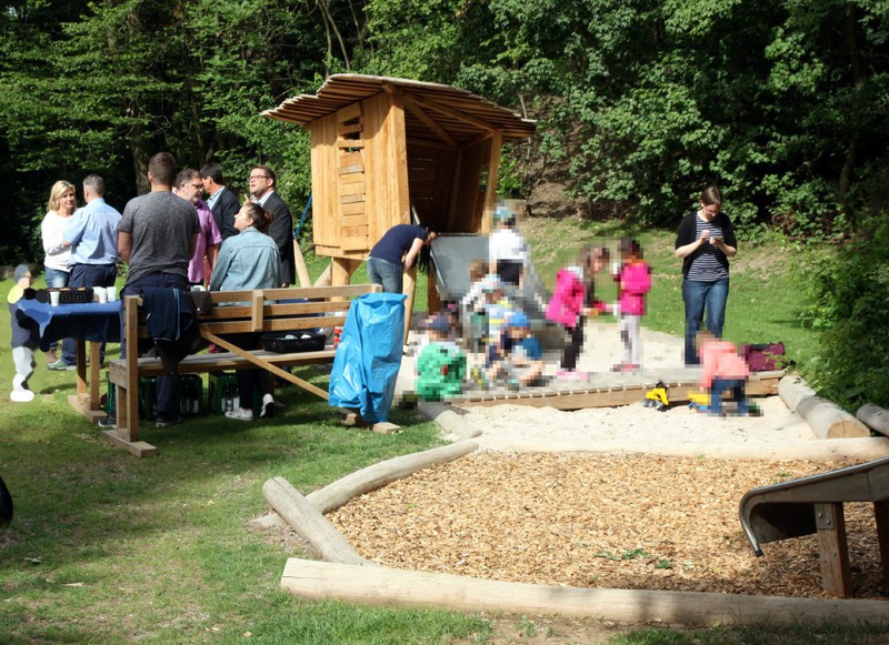 Eine schöne Werbung für den neu sanierten Spielplatz. Schade, dass man das Ereignis der Einweihung aus der Zeitung erfahren muss. Nichts desto trotz, der Spielplatz ist schön hergerichtet und den Kindern gefällt's.