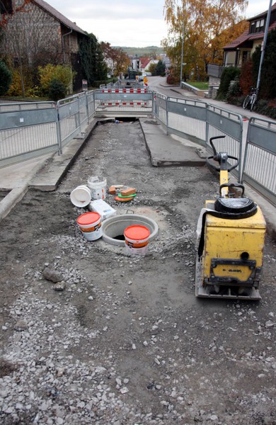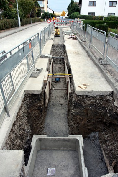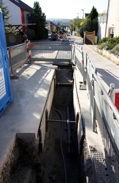 außerplanmäßig die Hauptleitung und die Hausanschlüsse erneuert werden. Deshalb erfolgten seit Ende September abschnittsweise Tiefbauarbeiten vor Ort. Die abschnittsweise Bauweise war deshalb
