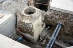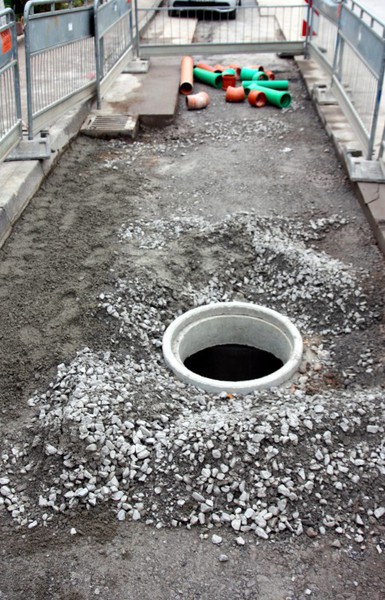 Eine schnelle Baustelle. Eine neue Wasserleitung ist schon verbaut, ebenso die Ventile/Absperrteile. Interessant.
