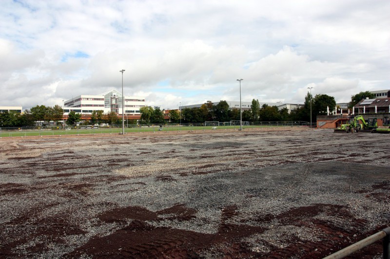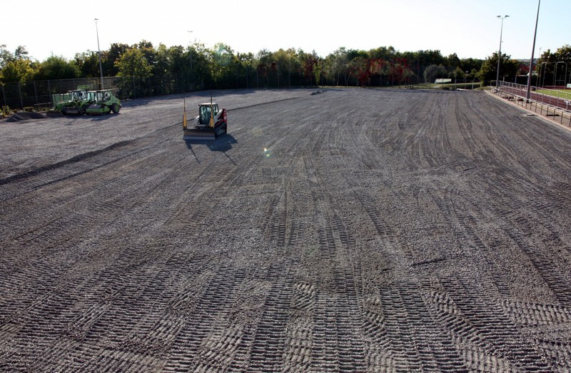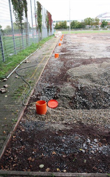 können, steht einer Fertigstellung der Kunstrasenfläche bis kurz nach den Herbstferien nichts im Wege.