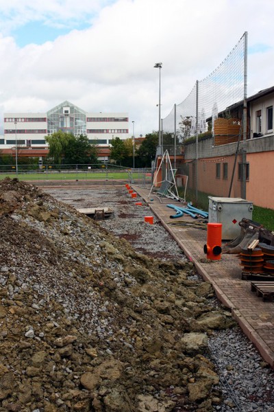 Auch beim Tennenplatz geht es weiter. Es wurden Drainagen eingebaut.