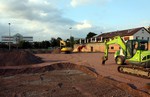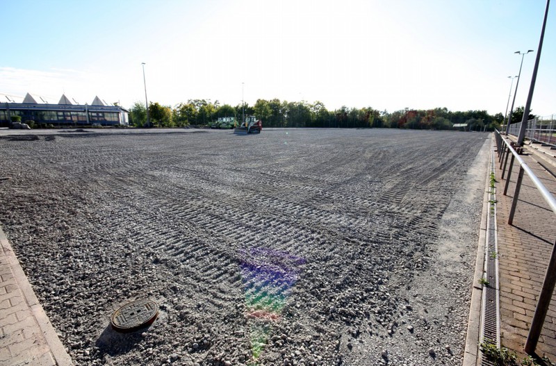 Die Arbeiten sind gut fortgeschritten. Beinahe der gesamte Platz ist bereits von den Baggern bearbeitet worden.