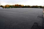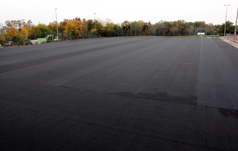 Auf die Asphaltschicht wurde eine Gummigranulatschicht aufgebracht. Optisch ist kaum ein Unterschied zu sehen, beides ist eben schwarz...