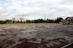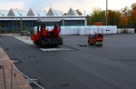 Erstaunlicherweise wurde auf dem Platz eine Asphaltschicht aufgebracht. Schon interessant, wie der Platz neu entsteht...