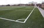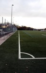Eigentlich sieht es jetzt fertig und nutzbar aus. Die silberne Färbung des Kunstrasens kommt vom Sand, der in dieser Woche aufgebracht wurde.