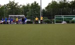 War der Sand doch kein Sand? In der letzten Woche war man mit Sand beschäftigt. In dieser Woche war ein Granulat aufgebracht. Jetzt ist der Kunstrasen schön weich. So muss es sein.