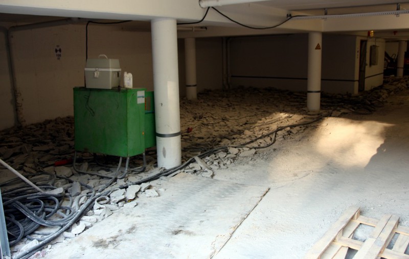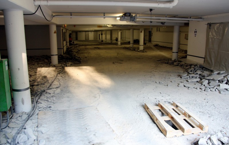 Die letzten Bilder vom alten Zustand des Tiefgaragenbodens. Ab nächster Woche gehen die Bauarbeiten los.