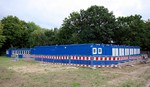 Nun doch früher als angekündigt kamen die Container an. Alle Container sind zusammengesetzt und ergeben die neue Ersatzmensa. Es folgt noch der Innenausbau und die Fundamente werden vermutlich mit Erde überdeckt. Mal sehen...